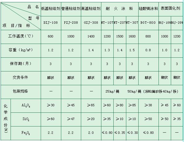 【產(chǎn)品簡介】 耐火纖維粘結(jié)劑是在耐火纖維施工時用在耐火纖維之間或耐火纖維和爐墻之間的糊狀膠體。合理應(yīng)用粘結(jié)劑可使耐火纖維與耐火纖維、耐火纖維與爐墻之間有機(jī)地粘結(jié)在一起,有效地提高耐火纖維的使用效果和壽命。 【最高使用溫度】 產(chǎn)品的最高使用溫度取決于材料的使用條件。 【供貨規(guī)格和包裝】 各類高溫粘結(jié)劑及表面固化劑均以塑料桶包裝發(fā)運(yùn)(特殊包裝可根據(jù)客戶需求定做)。